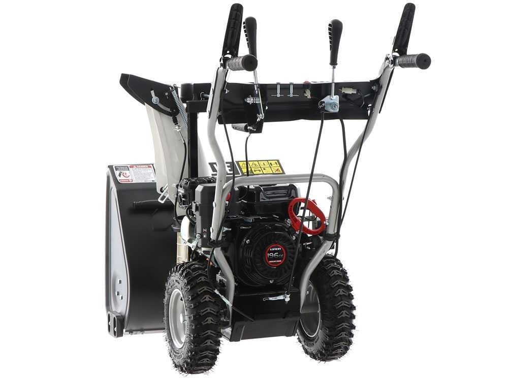 Mit einem Nettogewicht von nur 63 kg lässt sich die Schneefräse leicht transportieren und manövrieren. Die großen 13-Zoll-Räder mit Traktorprofil bieten optimale Traktion. Das mechanische Getriebe mit 4 Vorwärts- und 1 Rückwärtsgang sorgt für einfache Steuerung.