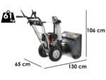Dank der Räumbreite von 61 cm und der Räumhöhe von 51 cm können auch größere Schneemengen schnell beseitigt werden. Das zweistufige Frässystem zerkleinert den Schnee effizient und wirft ihn bis zu 10 Meter weit aus. Der Auswurfkamin lässt sich manuell um 190° drehen, und der obere Deflektor ist bequem über einen Hebel verstellbar.