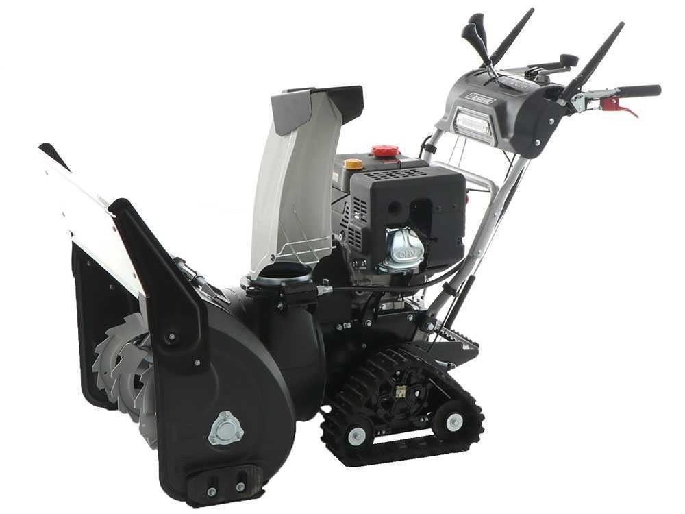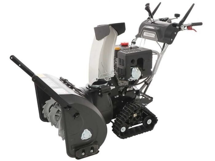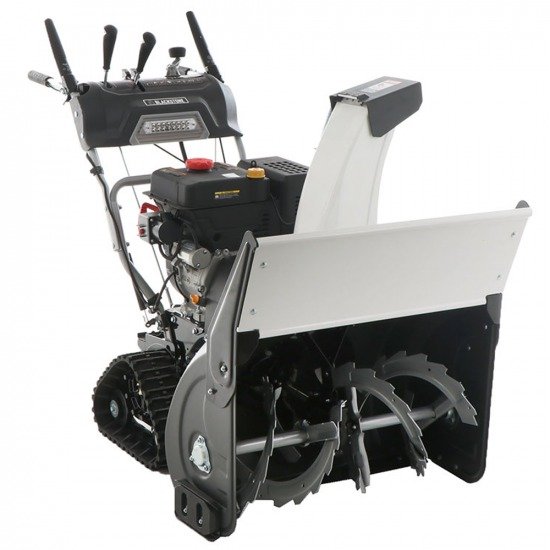 Der Raupenantrieb garantiert hohe Traktion auf allen Untergründen – perfekt für abschüssige oder vereiste Flächen. Mit 76 cm Arbeitsbreite und einer zweistufigen Schneefräse mit gezacktem Stahlprofil kann sie große Schneemengen effizient räumen und bis zu 10 Meter weit auswerfen.